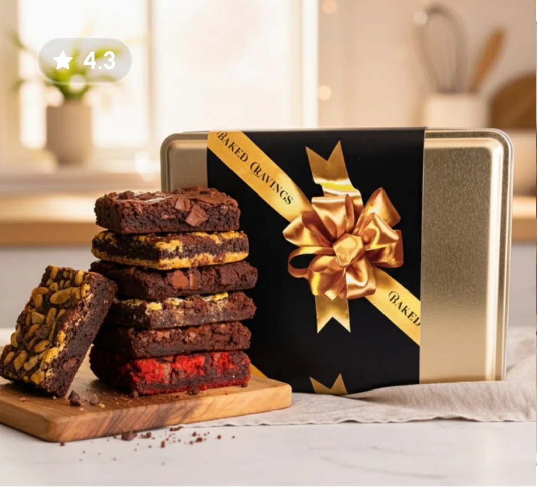Surprise and delight with our Brownie Tin! Various nut-free flavors like S'more, Oreo, and Chocolate Chip—perfect for any occasion.